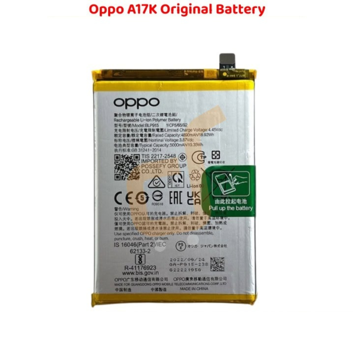 | Product Name | Oppo A17K Battery |