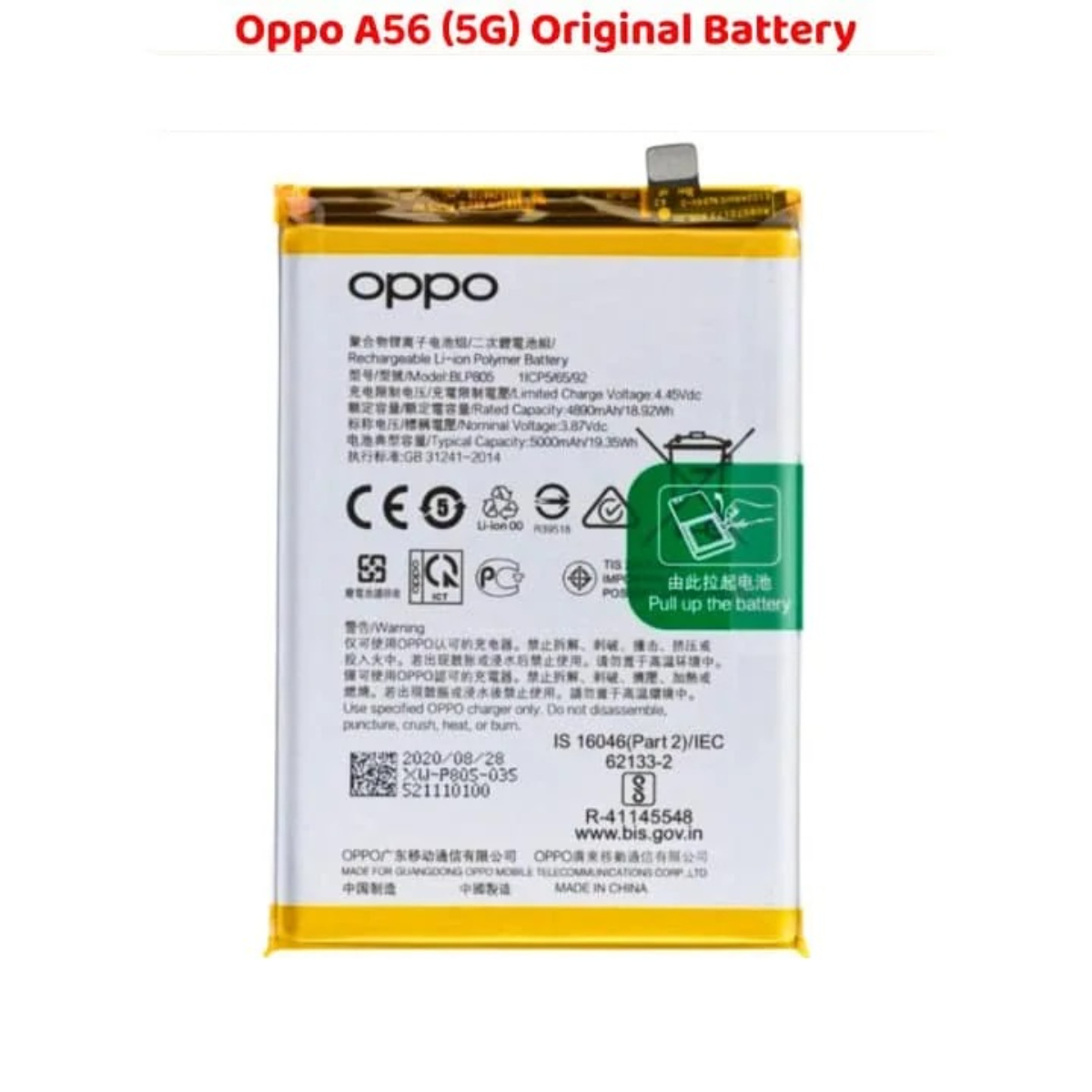 | Product Name | Oppo A56 5G Original Battery |