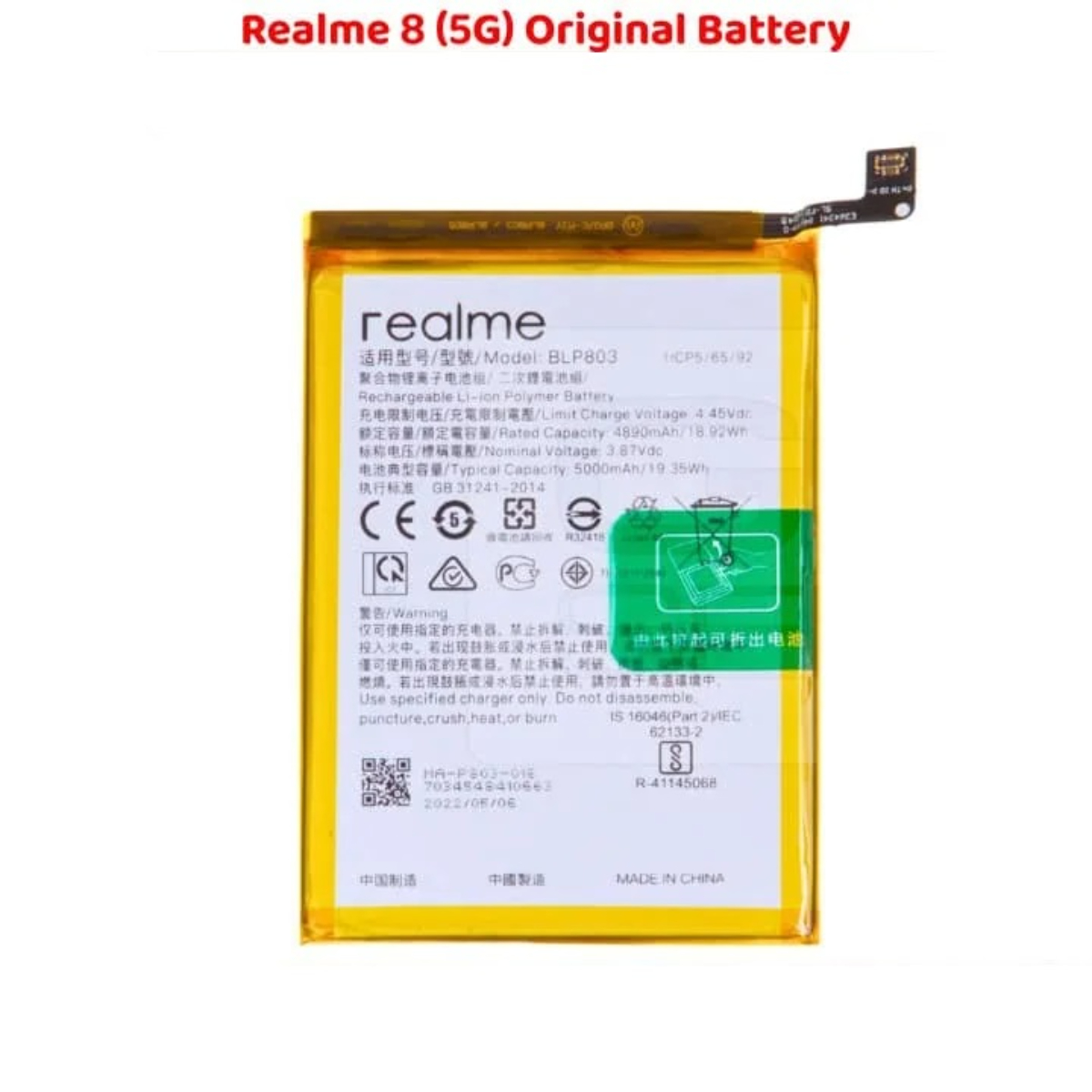 | Product Name | Realme 8 5G Original Battery |