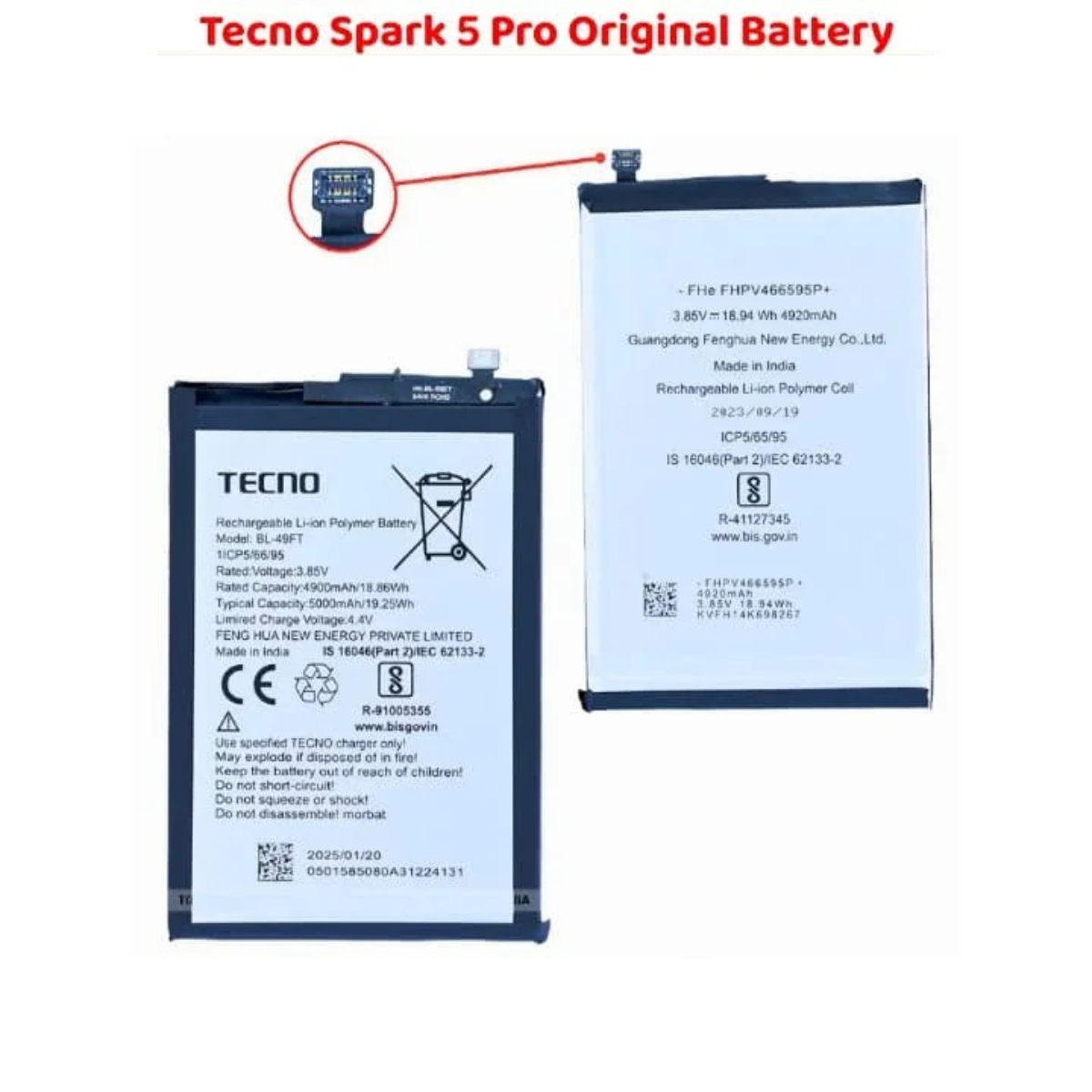 | Product Name | Tecno Spark 5 Pro Original Battery |