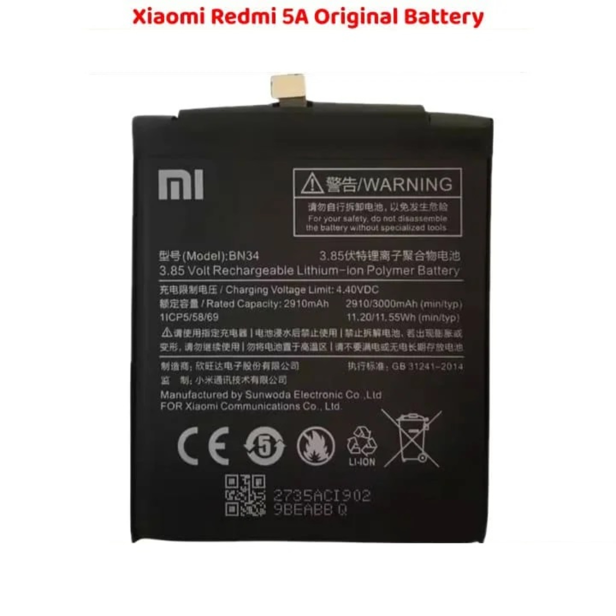 | Product Name | Xiaomi Redmi 5A Original Battery |