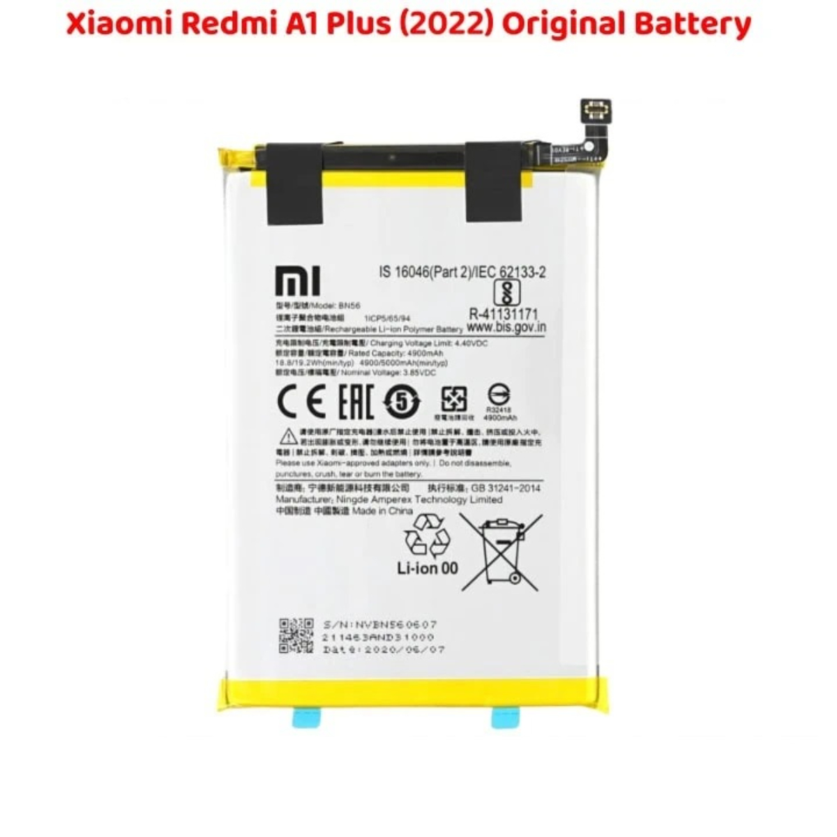 🔹 Authentic and Safe: Manufactured according to the original Xiaomi Redmi A1 Plus 2022 specifications, this battery guarantees safe operation, protecting your device from overheating, overcharging, and short circuits.