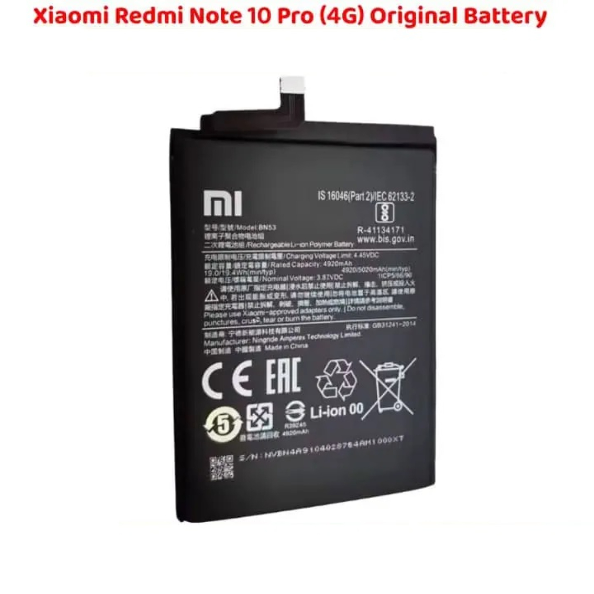 | Product Name | Xiaomi Redmi Note 10 Pro 4G Original Battery |